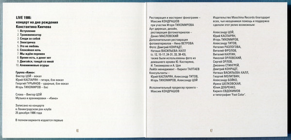 2-3 to 2-10 recorded live in Leningrad Rock Club on December 1st, 1984. First time complete recording.