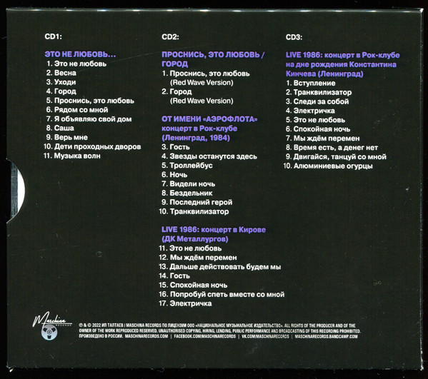 3-1 to 3-10 recorded live in Leningrad Rock Club on December 25th, 1986. First time complete recording.