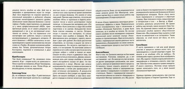 1-1 to 1-11, 2-1, 2-2 recorded at «Яншива Шела» studio, Leningrad, 1985.