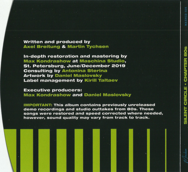 In-depth restoration from original demo and unfinished recordings from Axel Breitung studio archives by Max Kondrashow at Maschina Studio, St. Petersburg, June/December 2019. 32-bit mastering, 6-panel glossy digipak. Pressed on Mash Heavy Gold CD. 6-page booklet + original autograph card.